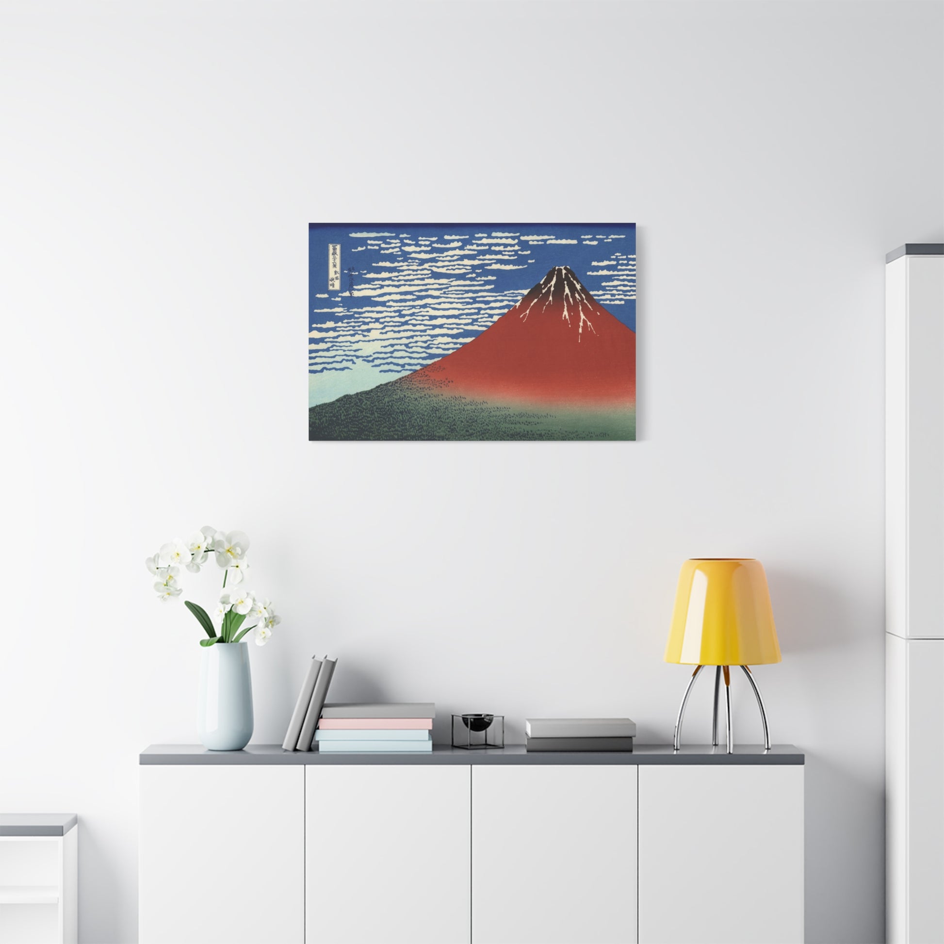 Enhance your space with this exquisite reproduction of Hokusai's iconic "Red Fuji," capturing Mount Fuji bathed in the warm hues of dawn. A masterpiece from the renowned "Thirty-Six Views of Mount Fuji" series, this artwork embodies the serene beauty of Japanese landscapes. Great for art lovers, collectors, and those celebrating Japanese culture or looking to add an artistic touch to their space.