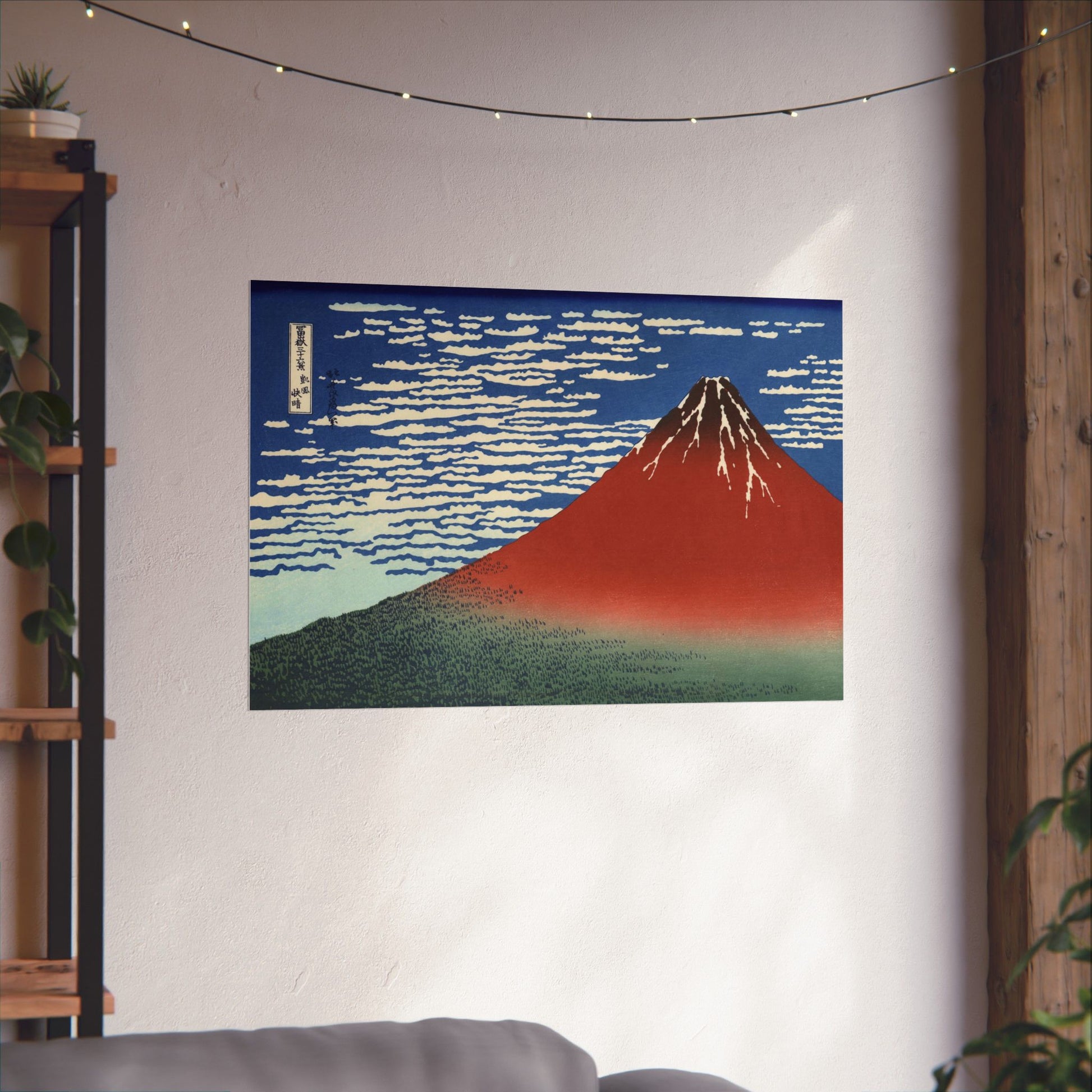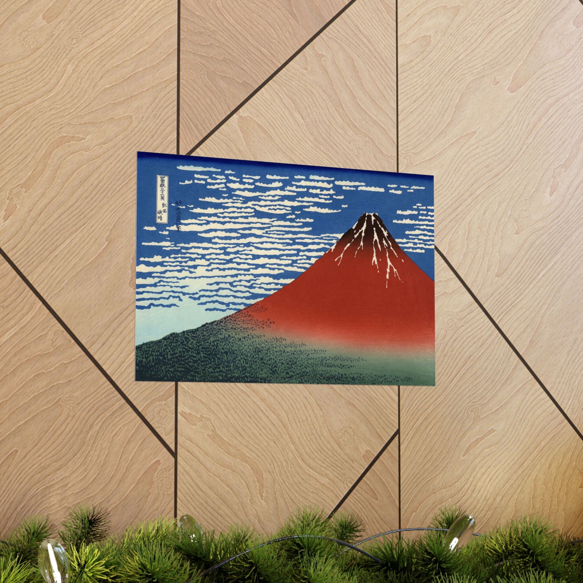 Enhance your space with this exquisite reproduction of Hokusai's iconic "Red Fuji," capturing Mount Fuji bathed in the warm hues of dawn. A masterpiece from the renowned "Thirty-Six Views of Mount Fuji" series, this artwork embodies the serene beauty of Japanese landscapes. Great for art lovers, collectors, and those celebrating Japanese culture or looking to add an artistic touch to their space.