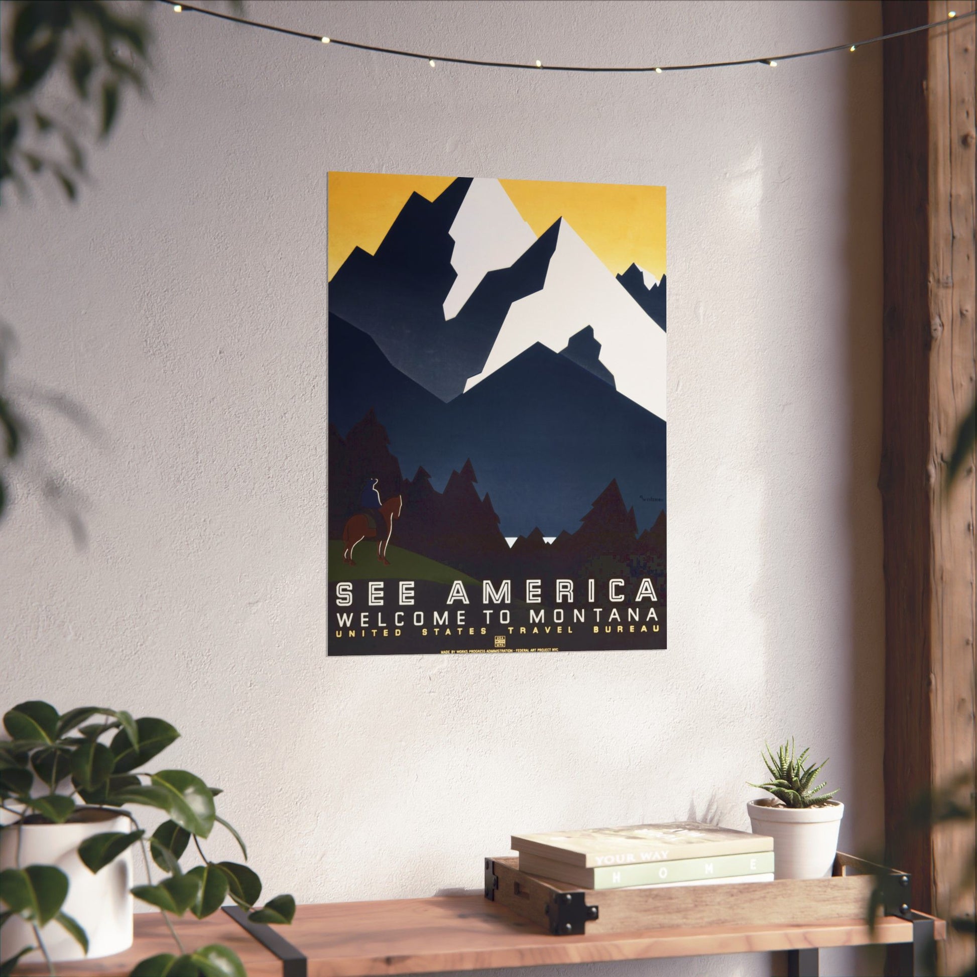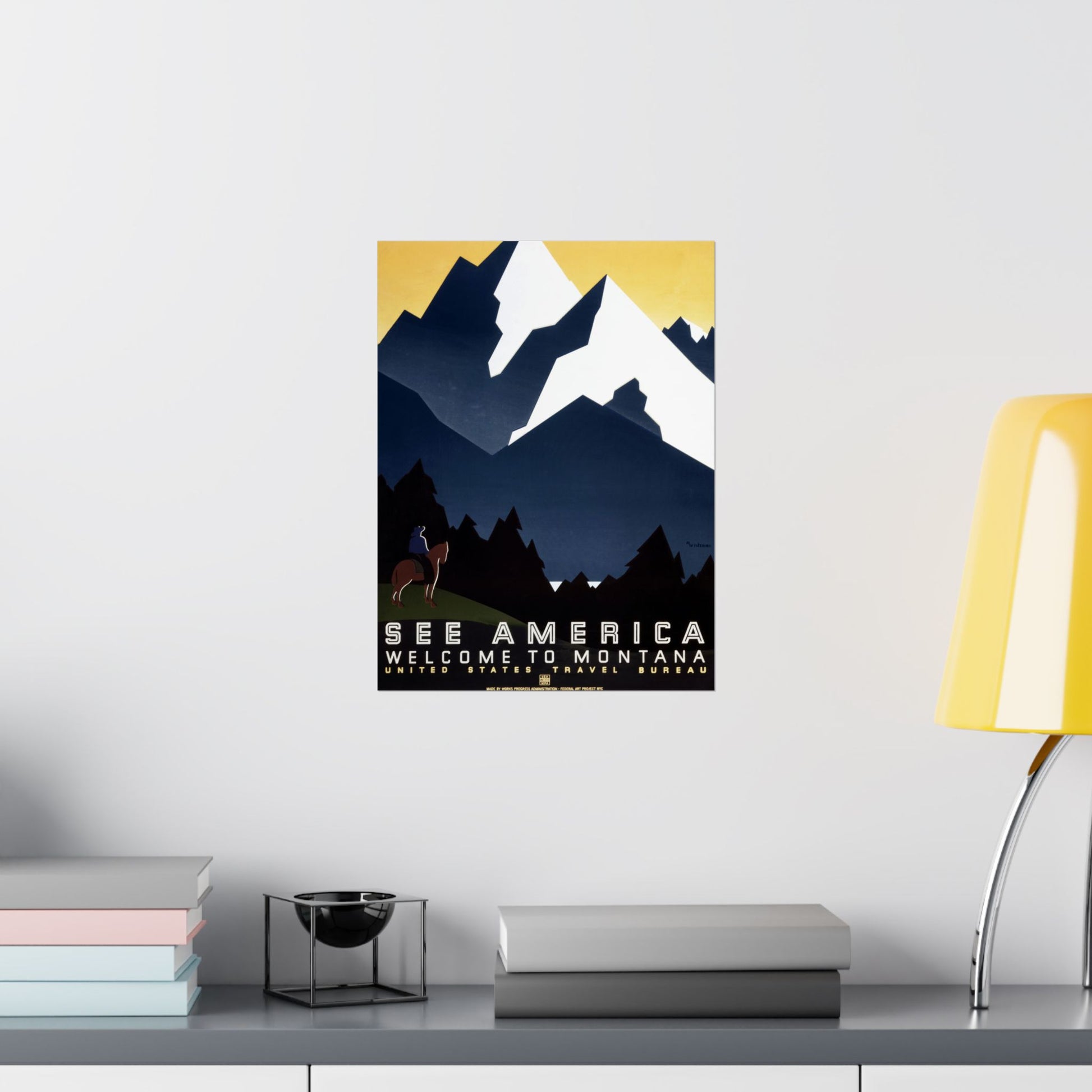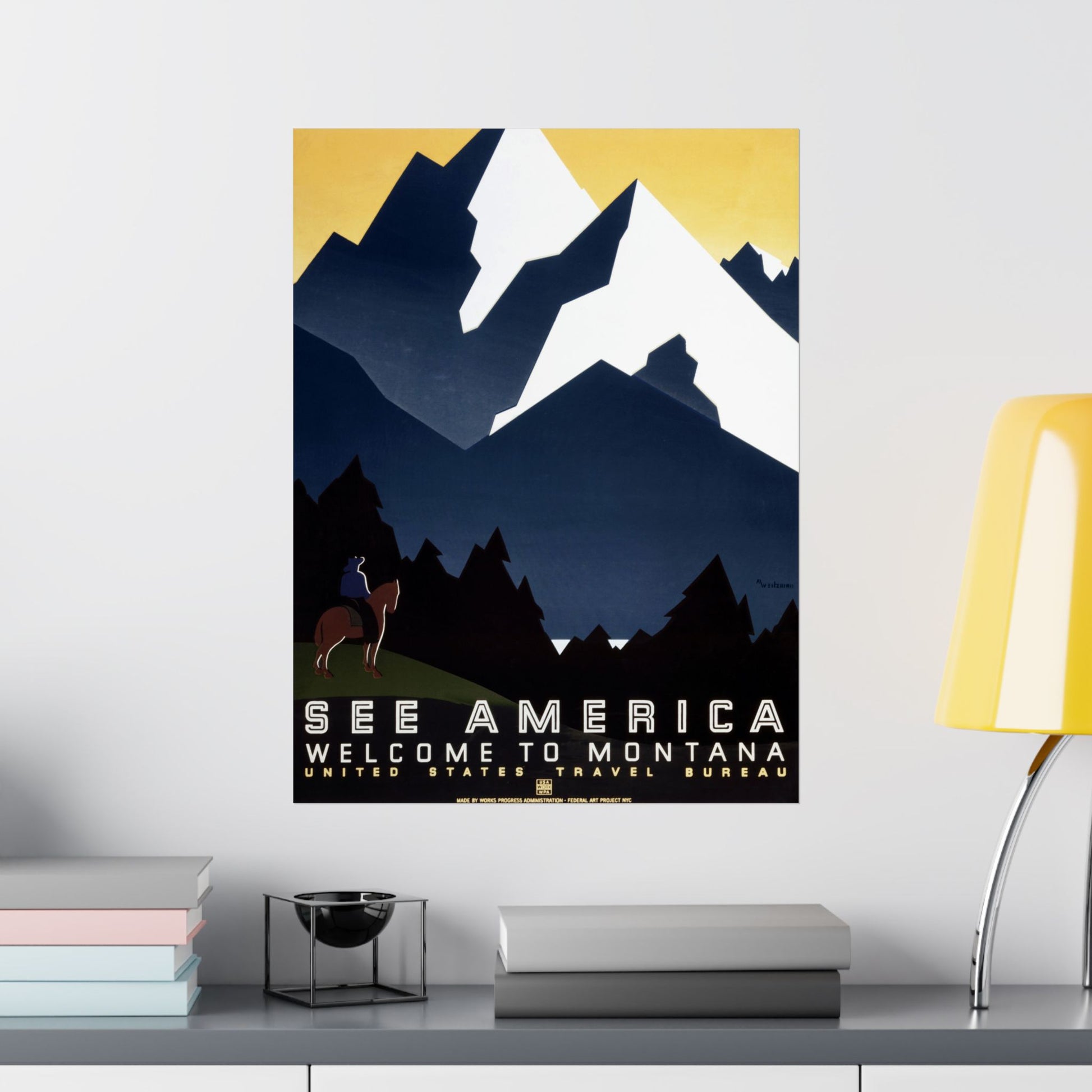 See America - Welcome to Montana WPA Poster - U.S. Travel Bureau (c. 1930s) - Wall Poster Print