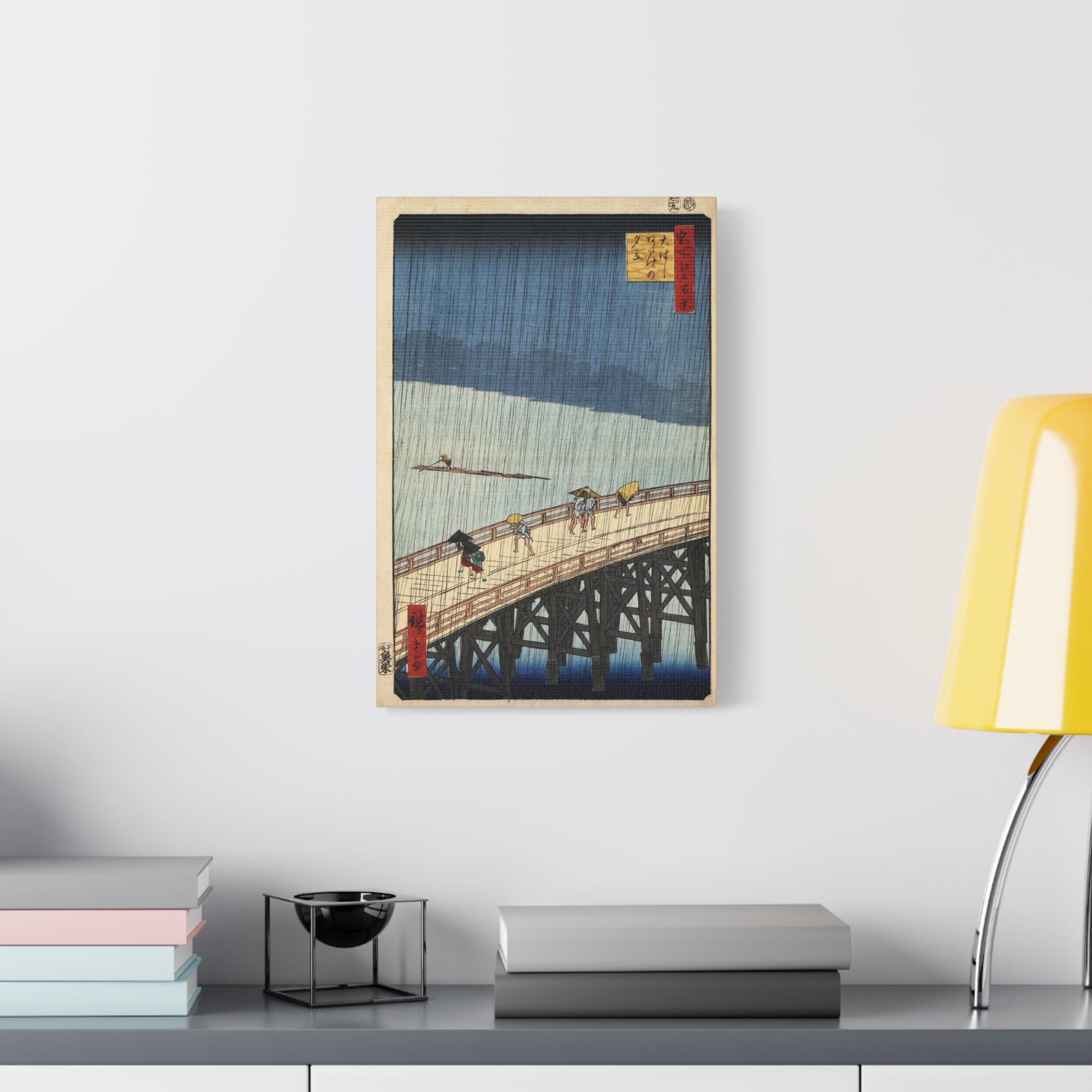 Shower over Shin-Ohashi Bridge (One Hundred Famous Views of Edo) - Utagawa Hiroshige - Stretched Canvas Print