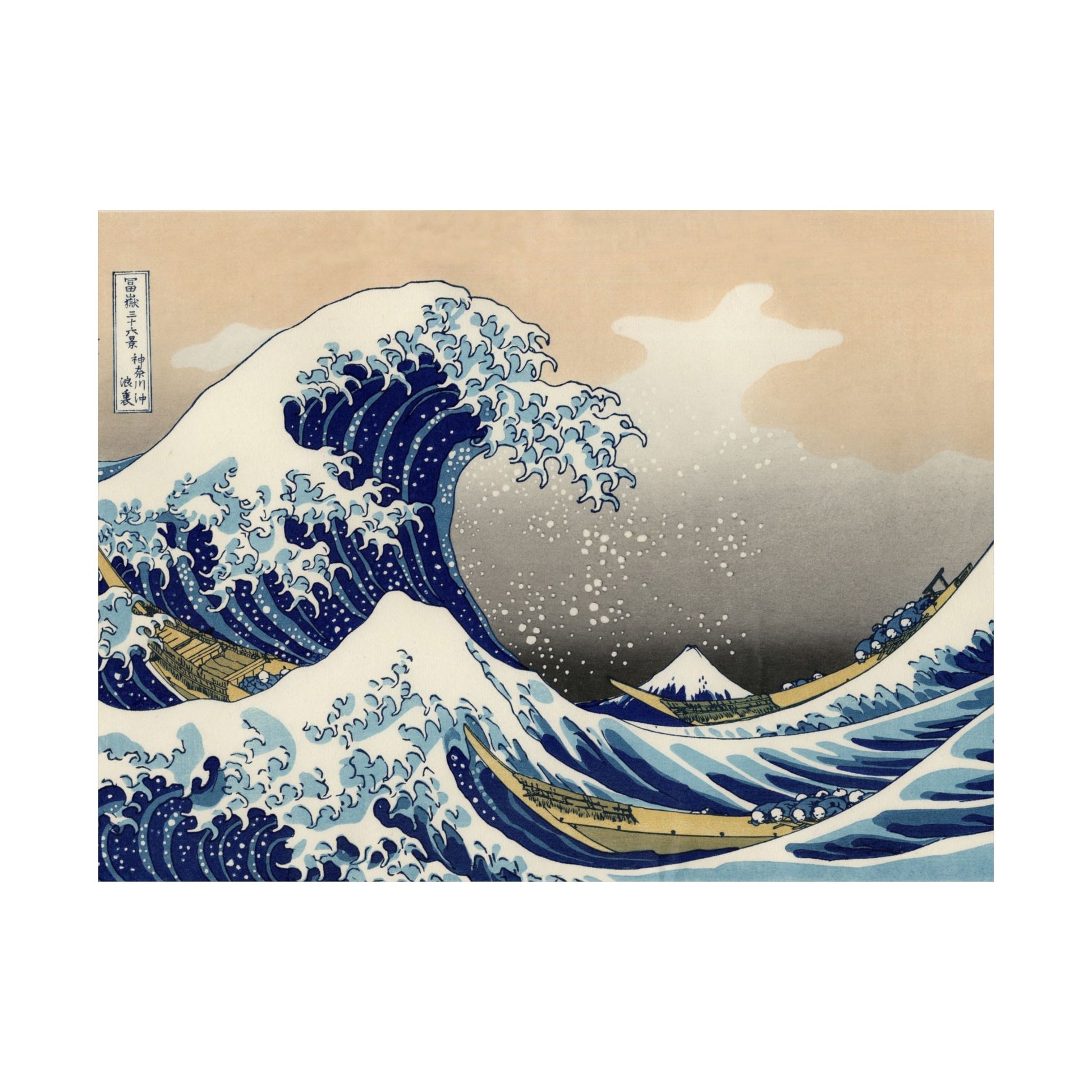 Every detail of Hokusai’s design reflects the mastery of Edo-period printmaking: the delicate lines of the sea, the rhythmic curves of the boats, and the expressive use of Prussian blue, a pigment newly introduced to Japan at the time. The result is a work that feels as alive today as it did nearly two centuries ago - a symbol of resilience, beauty, and the sublime force of the natural world.