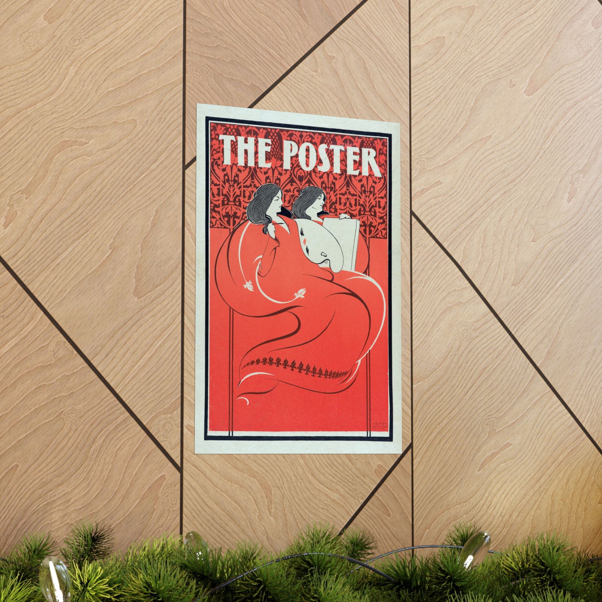 This striking 1896 poster by Elisha Brown Bird was created as a promotional cover for The Poster magazine, a short-lived but influential American publication dedicated to the emerging art of the modern poster. Titled Miss Art and Miss Litho, the image personifies fine art and lithography as two elegant, flowing figures, wrapped in bold red drapery against a richly patterned backdrop.
