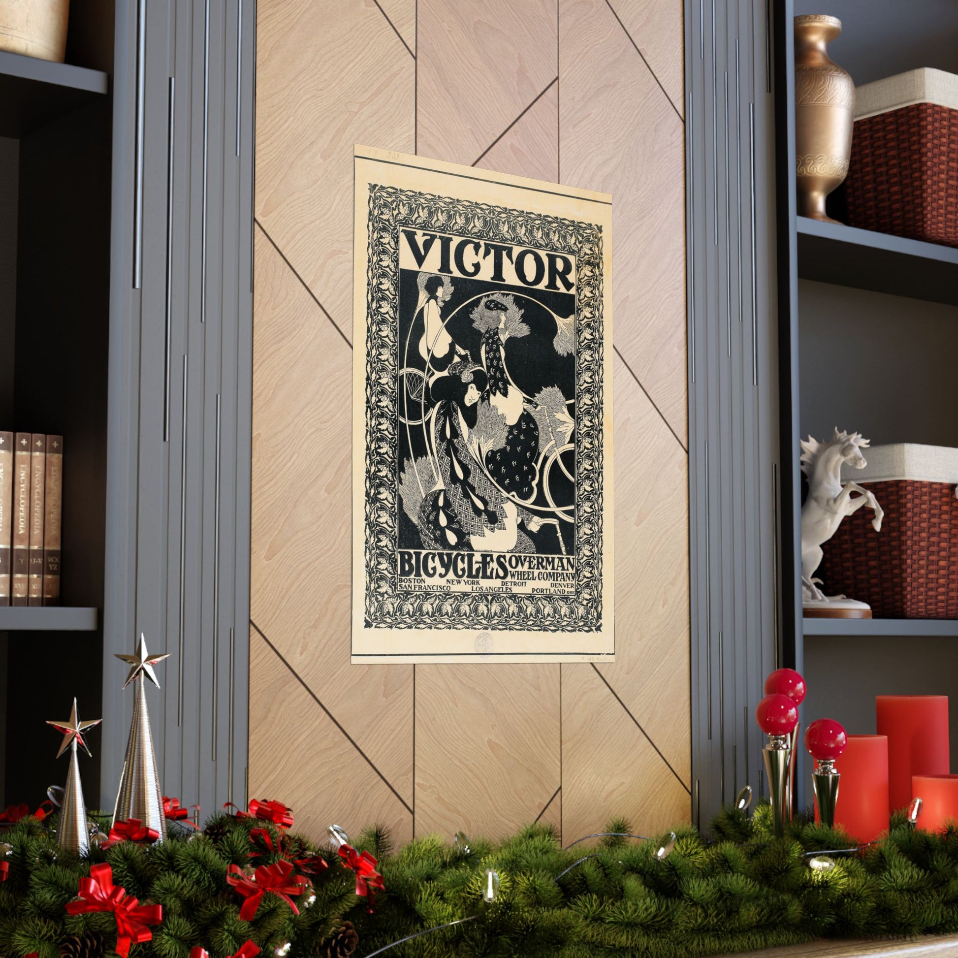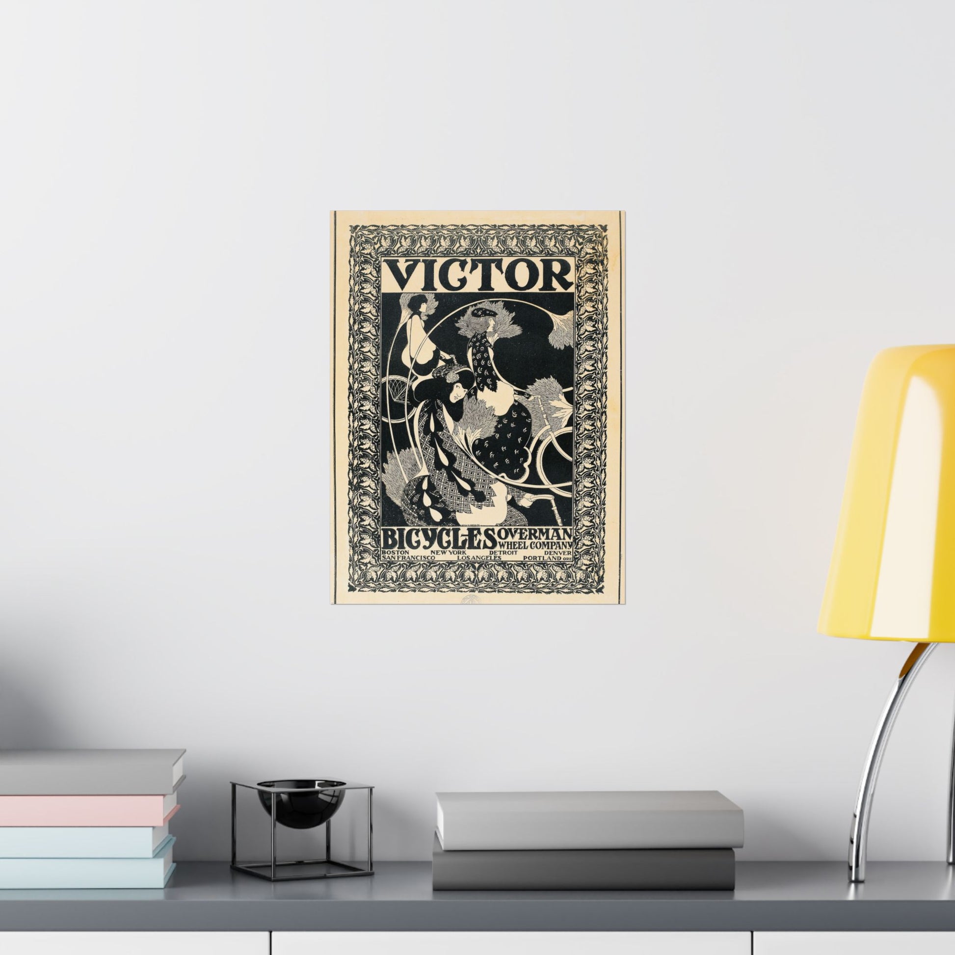 This artwork is a landmark example of American Art Nouveau and early advertising design, making it an excellent choice for collectors of vintage posters, cycling history enthusiasts, or anyone drawn to strong, graphic turn-of-the-century art. It works especially well as a statement piece in offices, studios, libraries, or modern interiors that appreciate historic design with bold visual impact.