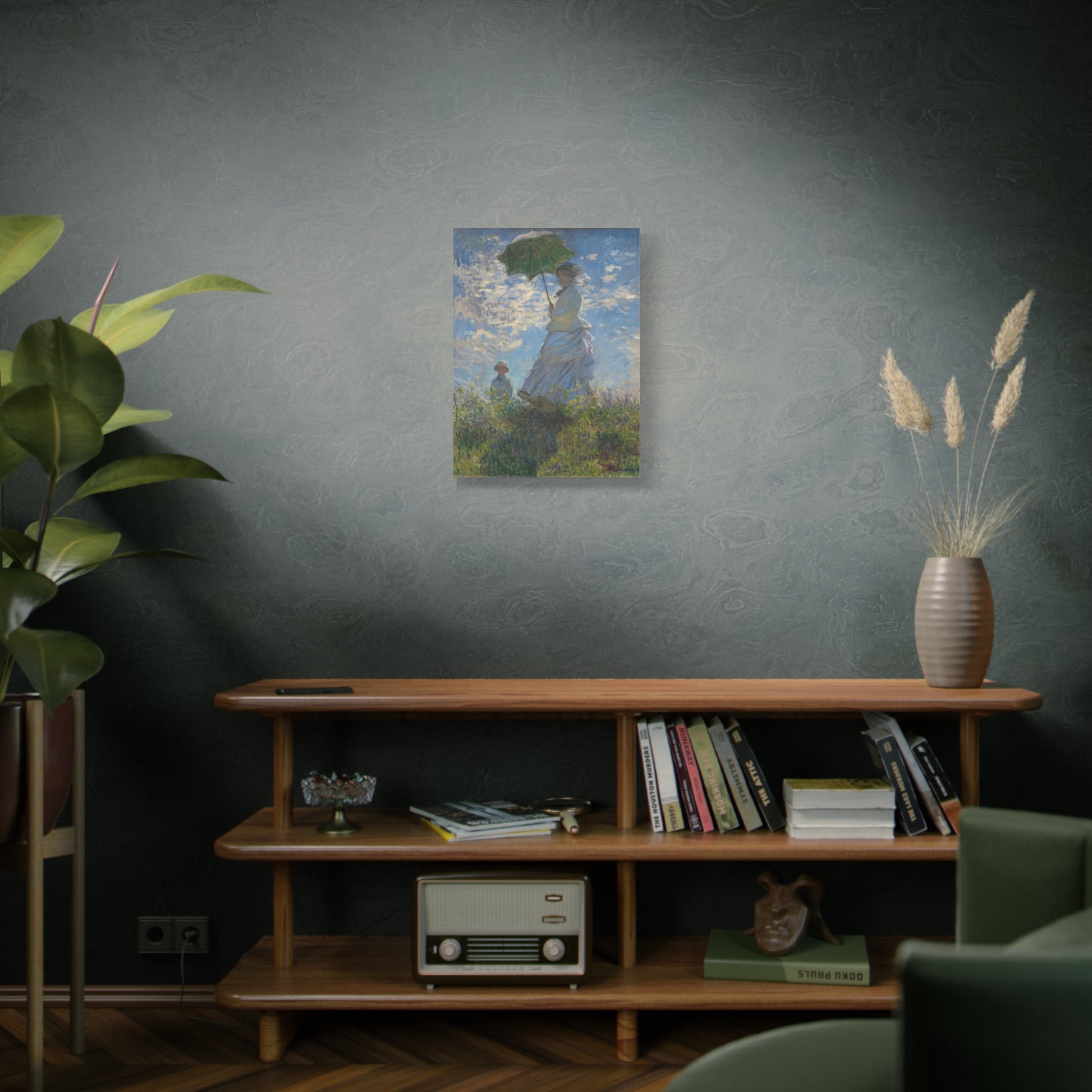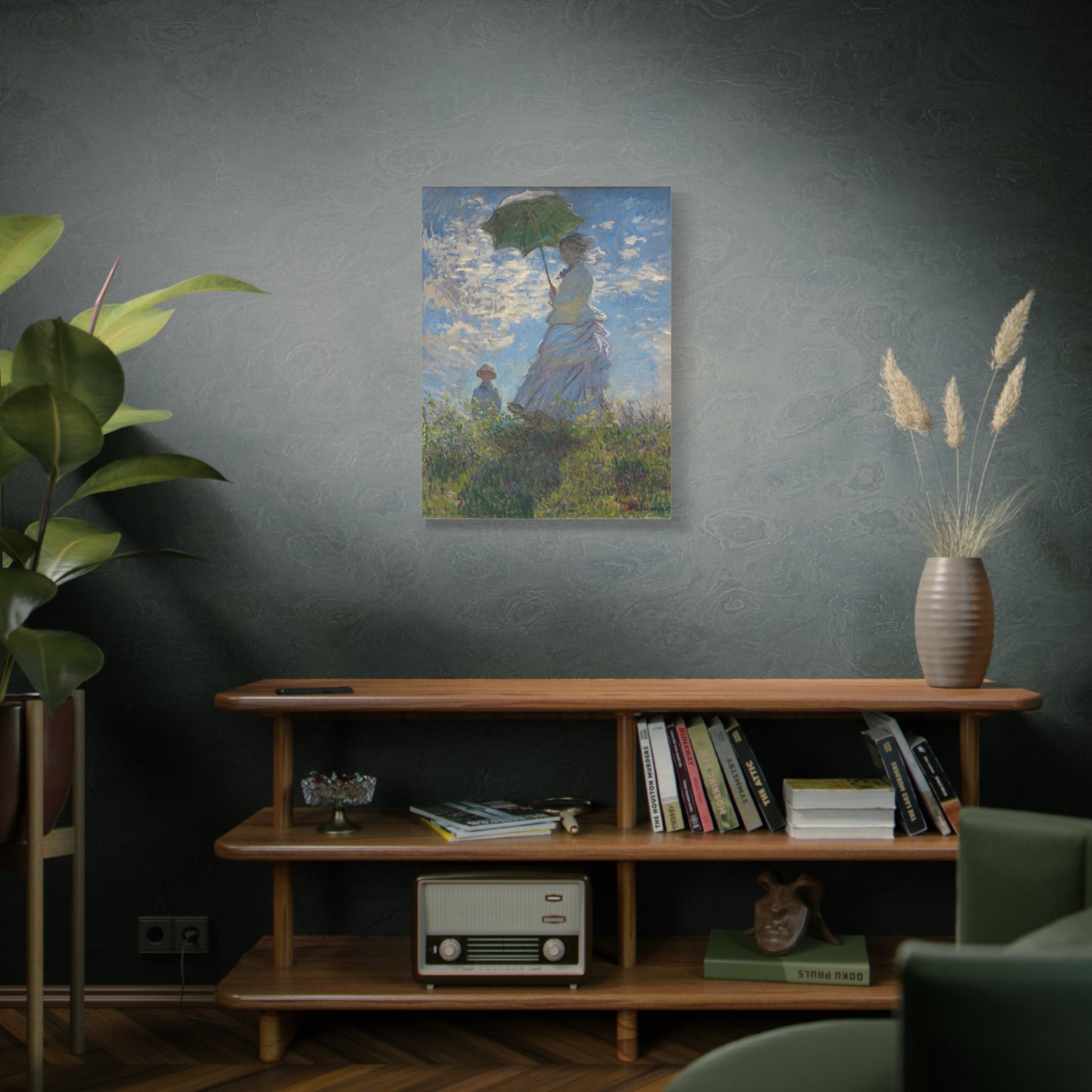Painted in 1875, Woman with a Parasol - Madame Monet and Her Son is one of Claude Monet’s most celebrated works and a defining image of Impressionism at its height. The scene captures Monet’s wife Camille and their young son Jean during a breezy summer walk, rendered with loose, energetic brushstrokes that give the entire composition a sense of motion and light. The upward perspective, fluttering grasses, and drifting clouds immerse the viewer in the moment, as if the figures have just paused before moving on.